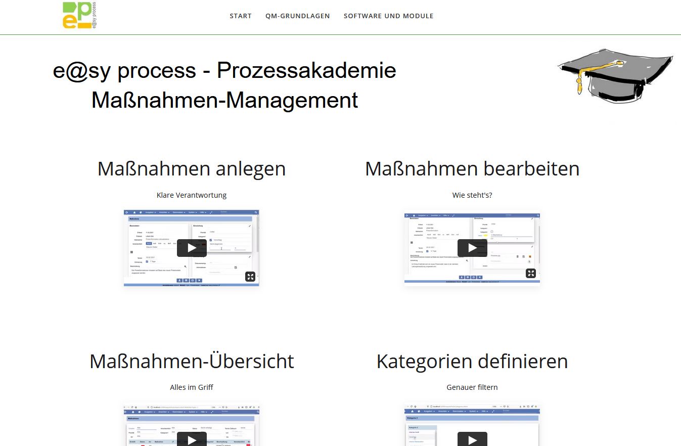 Zusätzlich erhalten Sie über unsere Prozessakademie wichtige Funktionen über Tutorials erklärt. Dazu gehört auch die Vorstellung der jeweiligen Neuerungen aus den letzten Updates von e@sy process.