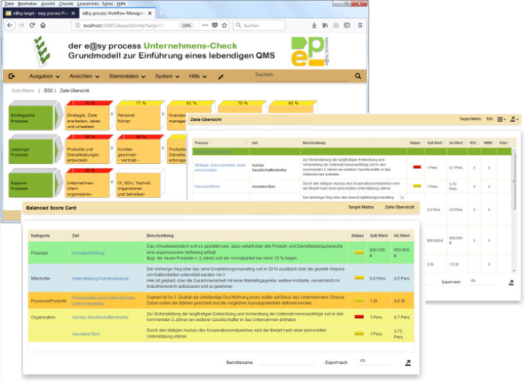 Zielorientierte Unternehmenssteuerung: e@sy target ermöglicht eine präzise Definition und Visualisierung von Unternehmenszielen, was eine klare Fokussierung und strategische Ausrichtung unterstützt.